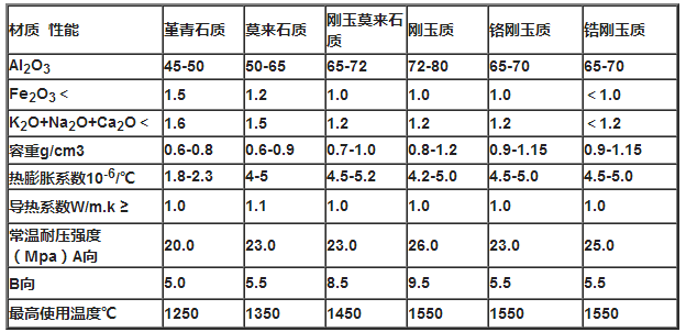 堇青石質、莫來石質、剛玉莫來石質、剛玉質、鋯剛玉莫來石鉻剛玉質等;以上可根據客戶要求生產各種規格。